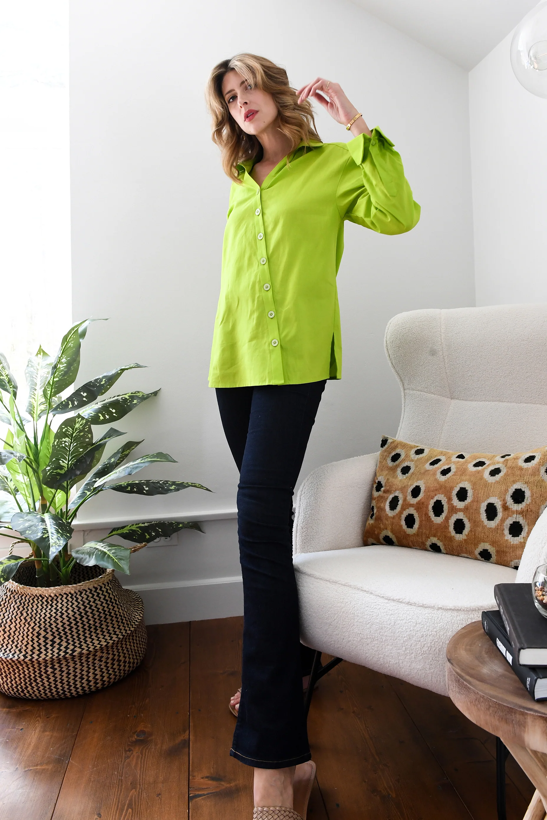 Lime Green Poplin Ruched Shirt