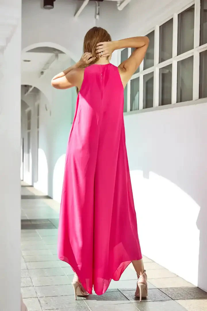 You won’t have to choose between comfort and glamour when you don this stunning halter neck jumpsuit. The pleated silhouette is detailed with colourful tassels and asymmetric hemline for an offbeat definition. Style the look with a pair of kolhapuris for a day out. Adorn it with nude stilettos and golden hoops for a dinner date.