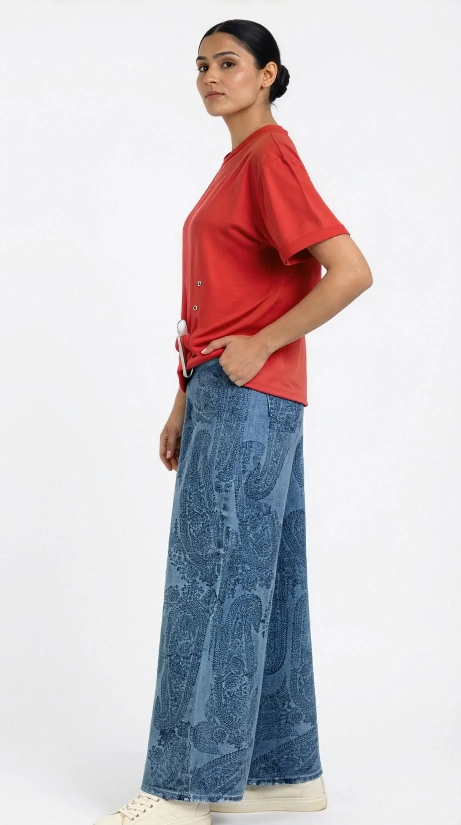 Laid-back with a touch of love, this cotton tee brings a playful twist to off-duty dressing. Designed in an oversized fit for effortless comfort, it features rivet and safety pin details at the front for a hint of edge, while a heart-shaped screen print at the back adds a sweet Valentine’s surprise. Style it with denim shorts for a casual date look or layer it over flared jeans for an undone, cool-girl vibe.
